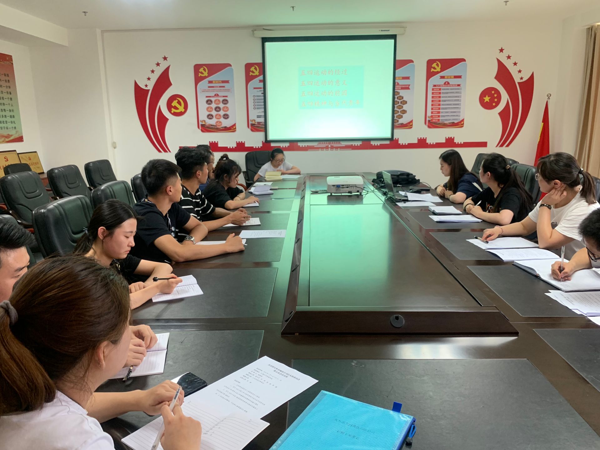 7月2日下午,共青團(tuán)天水市城投公司總支部委員會(huì)組織公司機(jī)關(guān)及子公司團(tuán)支部全體團(tuán)員干部開展“弘揚(yáng)五四精神,不忘初心繼續(xù)前行”的主題團(tuán)課。根據(jù)團(tuán)中央和團(tuán)省市委部署要求,全體參會(huì)人員認(rèn)真學(xué)習(xí)了《關(guān)于深入學(xué)習(xí)宣傳貫徹習(xí)近平總書記在紀(jì)念五四運(yùn)動(dòng)100周年大會(huì)上的重要講話精神的實(shí)施方案》、《關(guān)于印發(fā)〈基層團(tuán)組織標(biāo)準(zhǔn)化規(guī)范化建設(shè)工作的實(shí)施方案〉通知》文件。